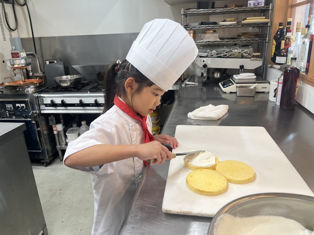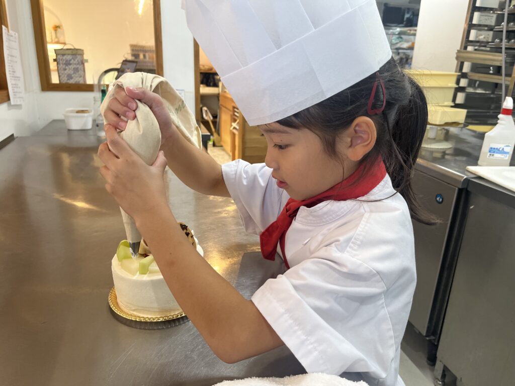 ちっびこパティシエの日記 はなかちゃん8歳 2025.09.272025.10.02 この記事は約1分で読めます。 ちびっこパティシエに参加してくれた、 同級生のお友達がいたそうで、 ご遠方から来てくれたのは はなかちゃん8歳😊 なんと今日は ママの誕生日当日‼️ バースデーケーキ作りに挑戦です🎂 フルーツを切る包丁さばきも 2年生とは思えない 腕前でしたよ! ママのにっこり笑顔を クッキーに描いて 満足の完成でした😀