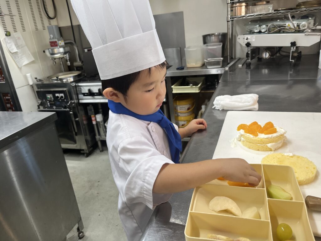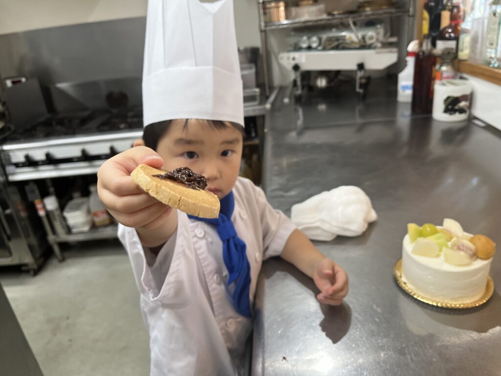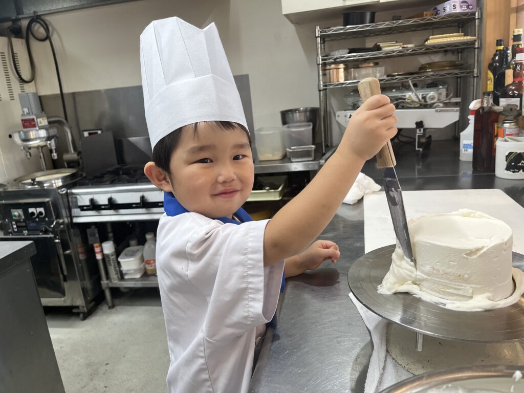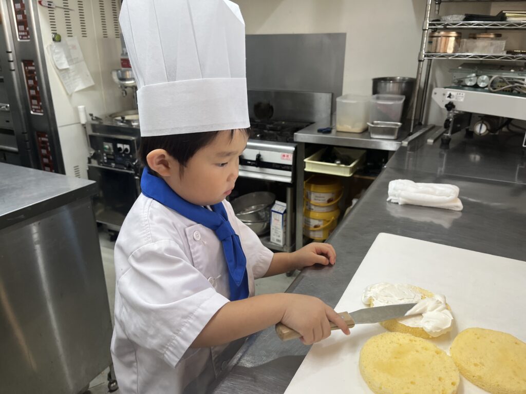 ちっびこパティシエの日記 りょうへいくん4歳 2025.10.012025.10.02 この記事は約1分で読めます。 今日が4歳の誕生日の りょうへい君😊 おめでとう㊗️バッチを 胸に付けてドキドキ💓わくわくの ご来店です いつもはもっと元気いっぱい らしいのですが やっぱり初めての場所は 緊張するよね(^◇^;)💦 それでも、ドキドキしながらも 初めての包丁も 一生懸命がんばってくれました😀 クッキーには迷わず アイスクリームの絵をかいて チョコペンたっぷりで チョコ味のアイスになりましたね