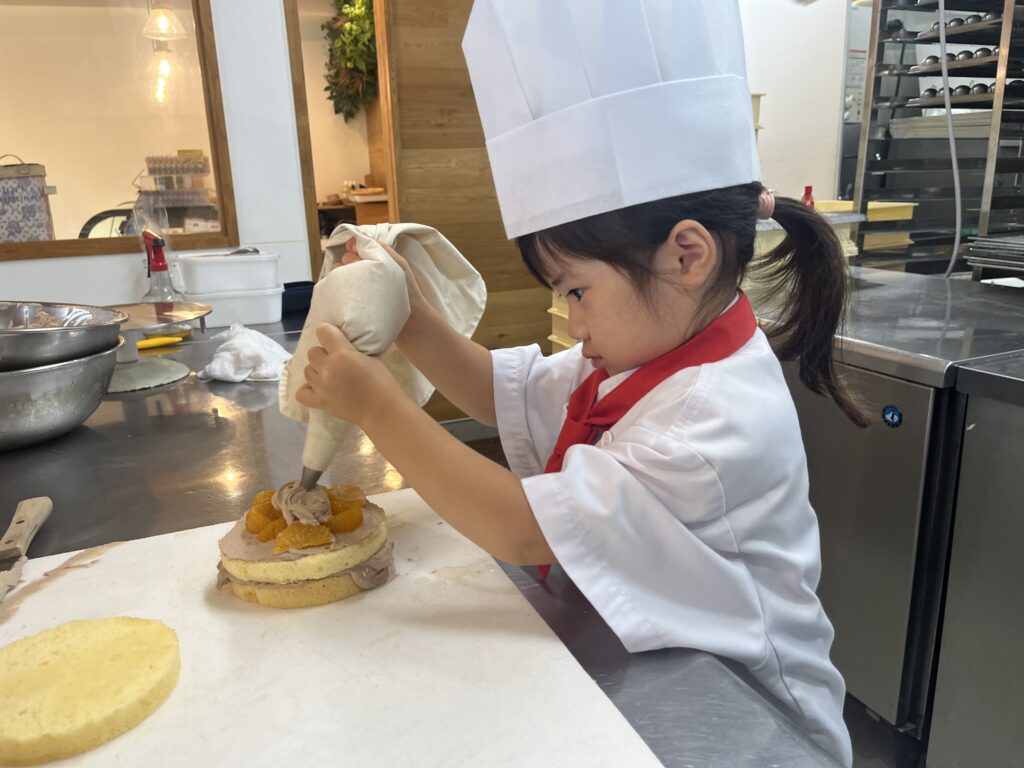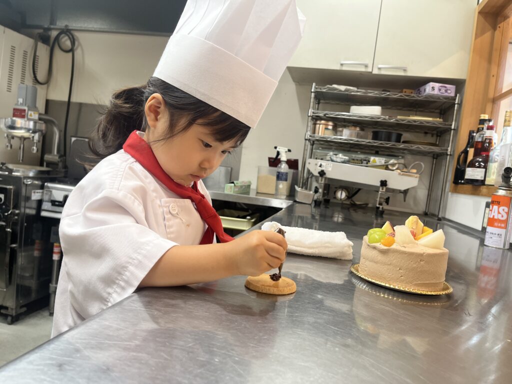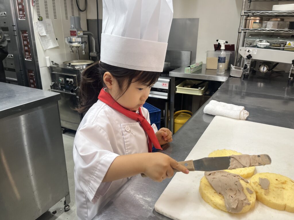 ちっびこパティシエの日記 のどかちゃん3歳 2025.10.122025.10.17 この記事は約1分で読めます。 6月にも一度来てくれたのどかちゃんが 今度はママのバースデーケーキ作りに 来てくれましたー❤️ 3才の小さなおててで コックコート👨🍳のボタンを 自分でとめるくらい ヤル気いっっぱい❣️ ワクワクする気持ちを 体いっぱいに表現して リアクションが本当に 豊富で可愛いのどかちゃん😍 完成の写真を撮る時も 切り株の椅子を自分で運んできて、 ディスプレイするという 自主性には驚かされました🤩