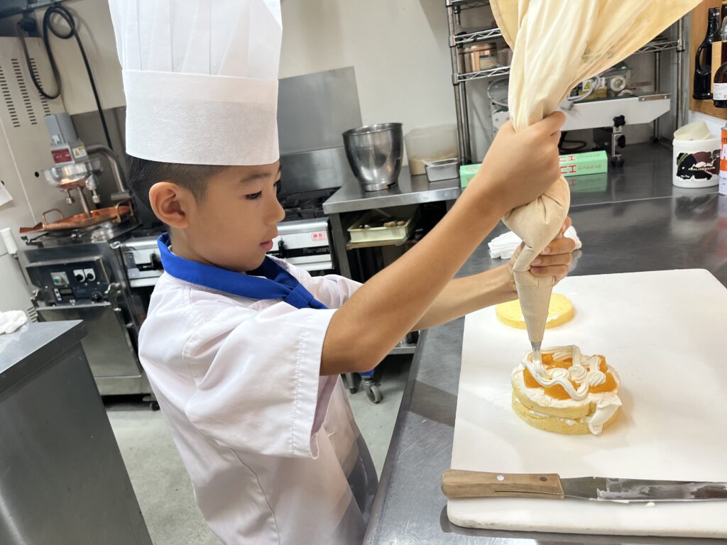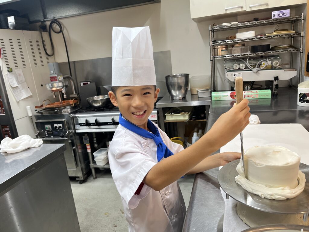 ちっびこパティシエの日記 けい君9才 2025.10.162025.10.17 この記事は約1分で読めます。 いつもはバースデーケーキ ご予約いただくのですが、 今回は自分で作ってみたい‼️ とのことでけい君9歳が ケーキ作り初挑戦です🎂 バッチリ決まったコート姿に ニコニコ😊とってもうれしそうに 楽しんでくれました♪ クッキーには家族4人のお顔と わんちゃんのお顔を描いて完成🙌 こういう時に何描こう?と考えて、 すぐ家族の顔が浮かぶって 素敵な事ですよね🥰 「サイコーやん😆❗️」と、 初めてのケーキ作りに 満足そうなけい君でした。