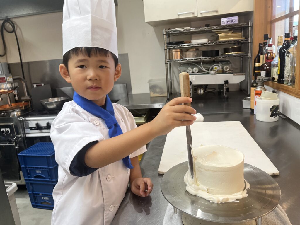 ちっびこパティシエの日記 しんのすけ君 2025.10.252025.10.28 この記事は約1分で読めます。 ハロウィンの日が🎃 6歳のお誕生日の しんのすけくん😊 バースデーケーキ作りに はじめて挑戦です❣️ ハロウィン当日は 幼稚園でもかぼちゃの仮装で 登園するらしくて、 近頃はハロウィンパーティーが 根付いてきましたよね😊 楽しそう🥰 ドキドキ、緊張気味の しんのすけくんでしたが、 時折こぼれる笑顔が とっても可愛かったです😍 プレートのクッキーには なんと自分の名前を漢字で挑戦❗️ すごい‼️