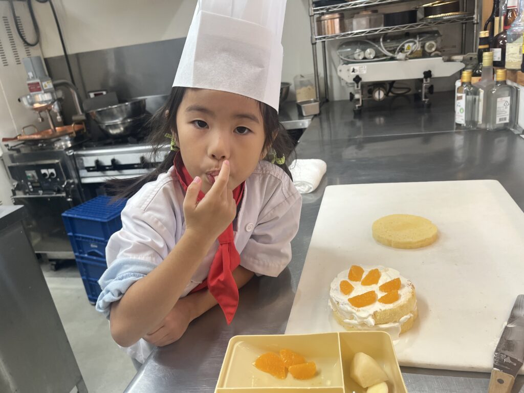 ちっびこパティシエの日記 みおちゃん5歳 2025.10.282025.10.30 この記事は約1分で読めます。 パパの誕生日にサプライズで バースデーケーキ作り🎂 パパには 「今日サプライズがあるよ❣️」と 教えてあげたんですって😆 かわいい❤️ でも何のサプライズかは 内緒にしてるので大丈夫❗️ パパきっとびっくりするよ😊 ハロウィンぽく🎃 デコレーションしたい! というみおちゃんでしたが、 オレンジ色のメロンに柿があったので、 オータムカラー🍁のケーキに仕上がって 満足の様子でした。😘