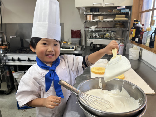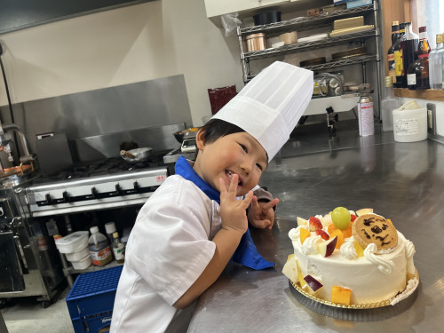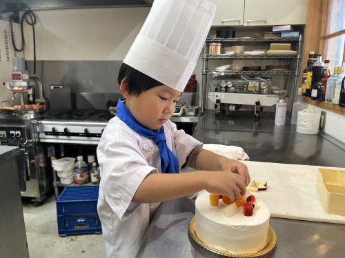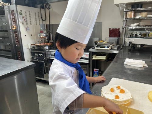 ちっびこパティシエの日記 いつき君5歳 2024.11.232025.11.08 この記事は約1分で読めます。 はるばる淡路島から 来てくれたいつき君が 5歳のバースデーケーキ作りです🎂 緊張するそぶりもなく ニコニコ笑顔も、 お話もたくさんしてくれました😍 みかんとマスカットを真ん中に とってもバランスよく フルーツを盛り付けてくれました😊 自分の考えてた デザイン通りにできたようで、 「もうこれで完成❤️」と、 残りのフルーツは ケーキの周りに貼り付けて 満足の出来栄えだったようです😊