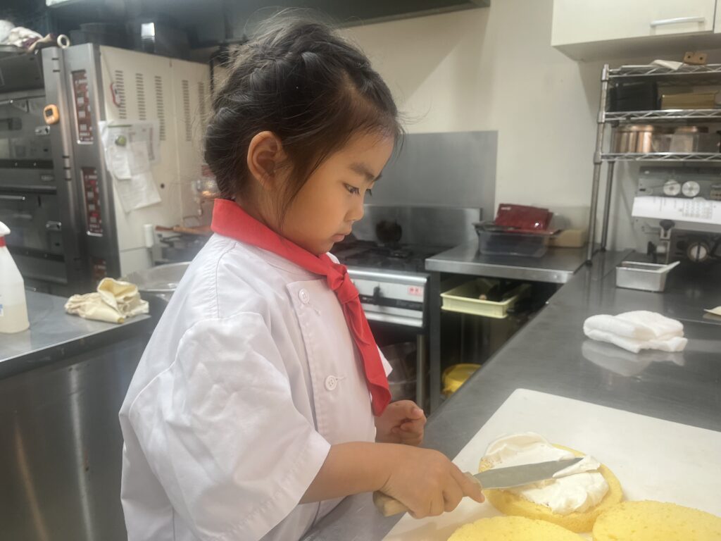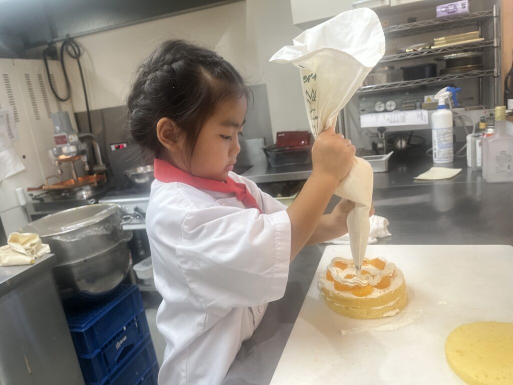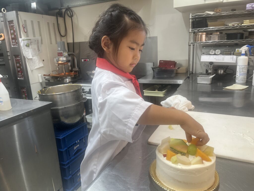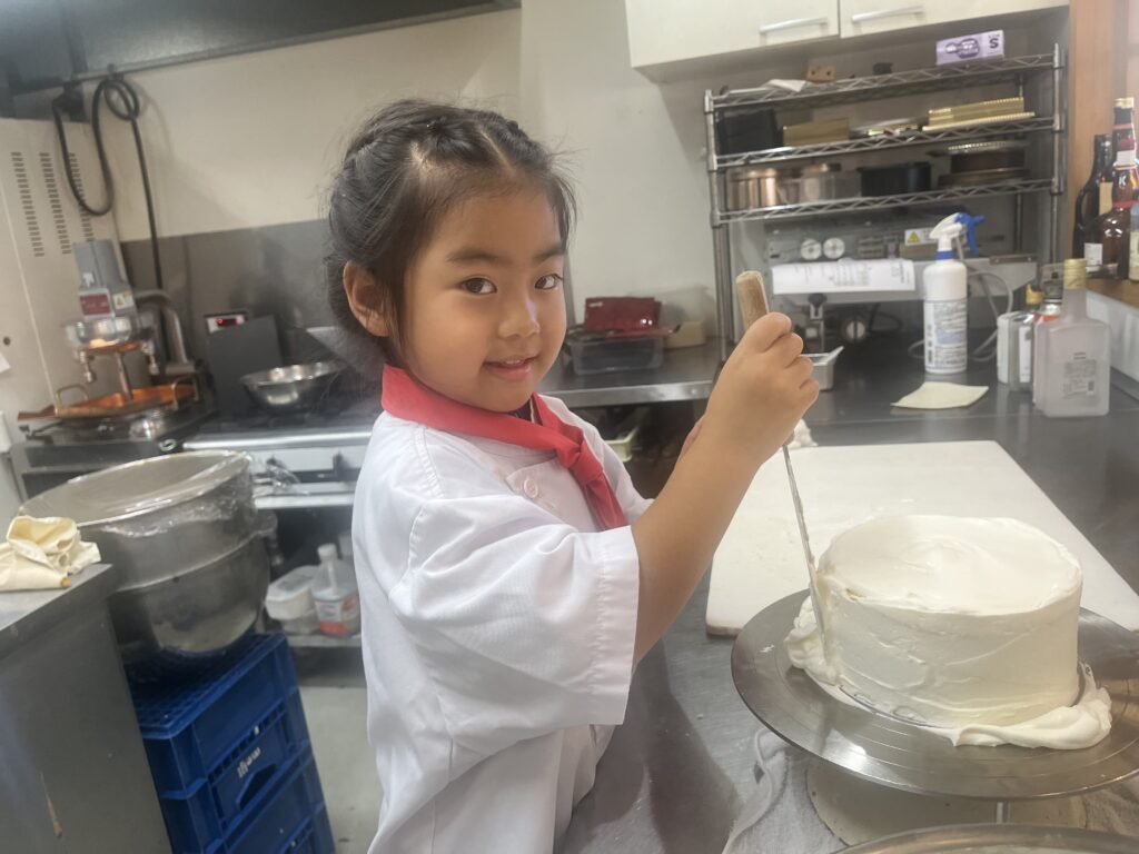 ちっびこパティシエの日記 みおちゃん6歳 2025.11.152025.11.18 この記事は約1分で読めます。 2月にも来てくれた みおちゃんがまた 来てくれました🙌 今日はみおちゃんの6歳の バースデーケーキ作りです🎂 前回はイチゴの季節でしたが 今日は秋のフルーツたっぷりだったので、 梨、柿、りんご・・と順番に きれいに並べて デコレーションしてくれました❤️ ひらがなも書けるようになっていて、 上手にお名前とかわいい似顔絵を 書いてくれましたよ😊 いっぱい迷って買ってもらった ランドセルで春から1年生 とっても楽しみですね。