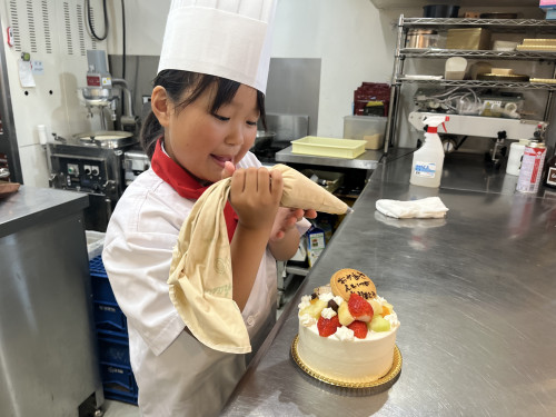 ちっびこパティシエの日記 にいなちゃん8歳 2024.07.022025.11.23 この記事は約1分で読めます。 1年生の時に来てくれていた、にいなちゃん😊 3年生になってきてくれました❣️ 今日はママのバースデーケーキ作りです🎂 前回のパティシエさんで使った コック帽子を家でのクッキングで いつも出してきては使ってくれているそうで、 とてもうれしいです🥰 にいなちゃんと同じか、 それ以上にちびっこパティシエを 楽しんでくれる、ママと3人で いつまでもおしゃべりし続けるそうな位 楽しいケーキ作りでした😘 家でのクッキングもきっと ママと楽しくしてるんだろうなぁと 私も元気がもらえました