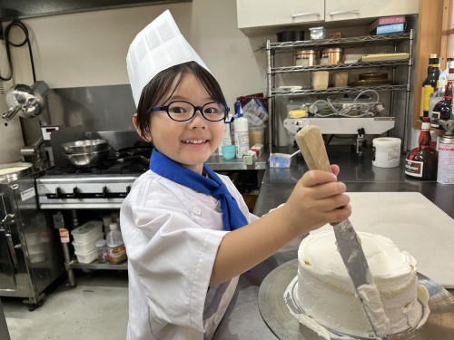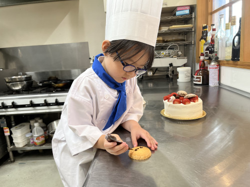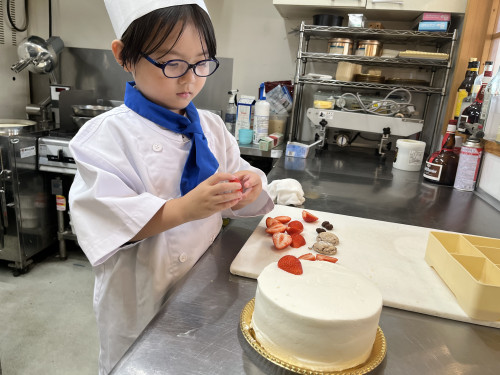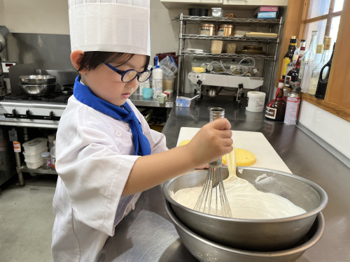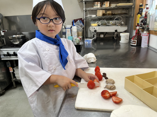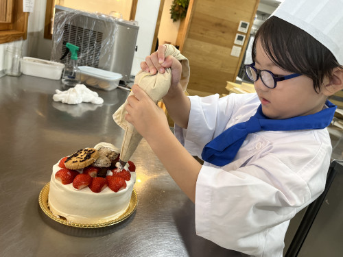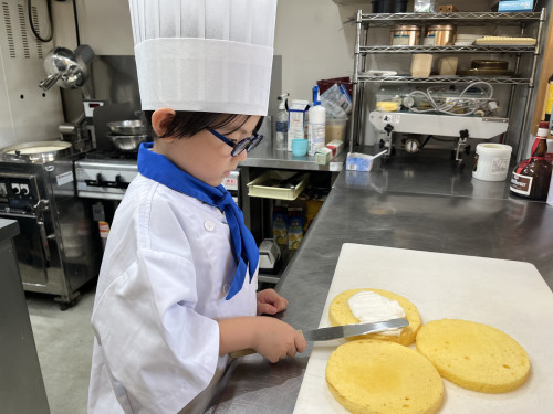 ちっびこパティシエの日記 ちさと君5歳 2024.06.152025.11.23 この記事は約1分で読めます。 お兄ちゃん、姉ちゃんの ちびっこパティシエさんの応援を してきてくれてた、末っ子の ちさと君が初挑戦٩( ᐛ )و ちさと君が作るのは、 おばあちゃんのバースデーケーキ🎂 憧れのコートと帽子に ネクタイを締めたら、 可愛らしい小さなシェフの完成🧑🍳 とってもよく似合ってて可愛い🥰🥰 最初は少し気恥ずかしそうだった ちさと君もケーキ作りが進むうちに、 「これなあに?」と 可愛い声で話しかけてくれました😊 完成したケーキに大満足のようすでした❤️🎂