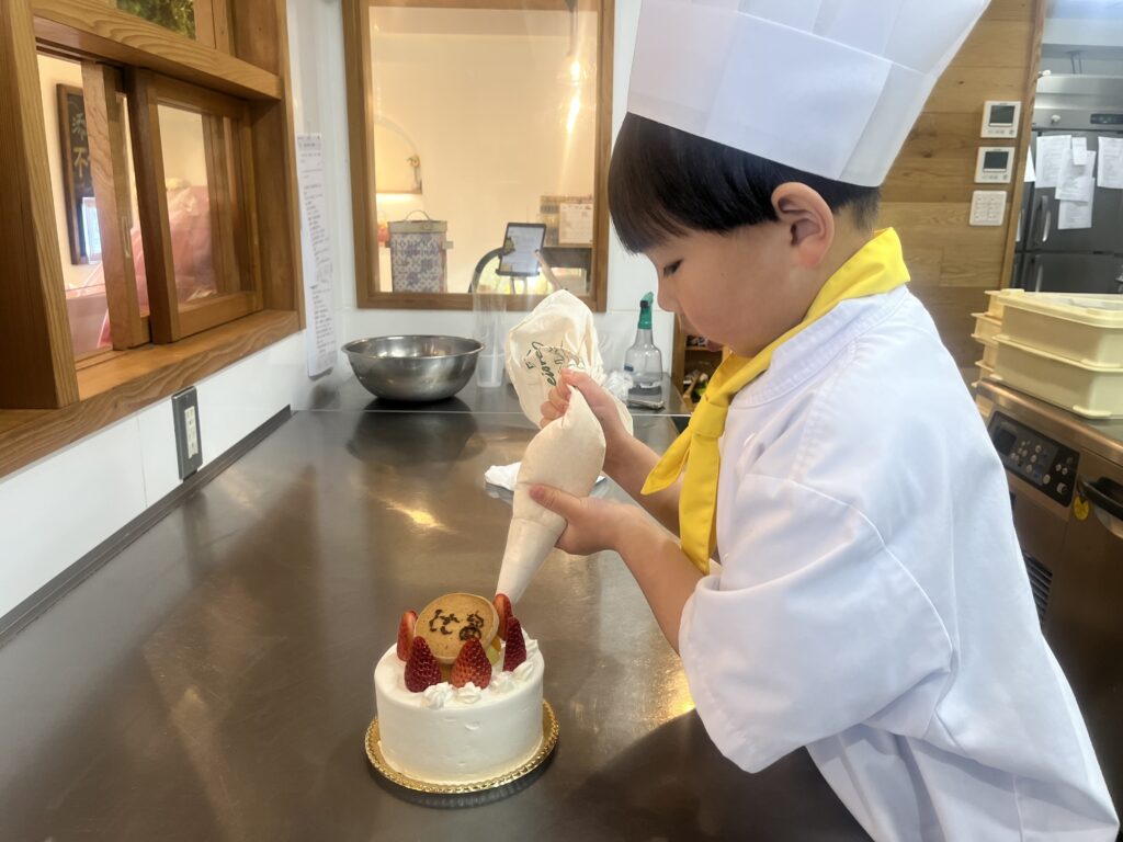ちっびこパティシエの日記 じんのすけ君6歳 2026.01.242026.01.26 この記事は約1分で読めます。 1年前、妹のちほちゃんが 来てくれましたが、 今日はお兄ちゃんのじんのすけ君が パパのバースデーケーキ作りです🎂 ちほちゃんの羨ましそうな まなざしに見守られ とっても楽しみにしてくれてた様子☺️ 「とと」上手にひらがなで 書いてにっこりお顔😊も 書いてくれました❗️ ちょうど焼きたての マドレーヌがオーブンから 出てきたので、お土産に🎁 にっこりの2人でした。