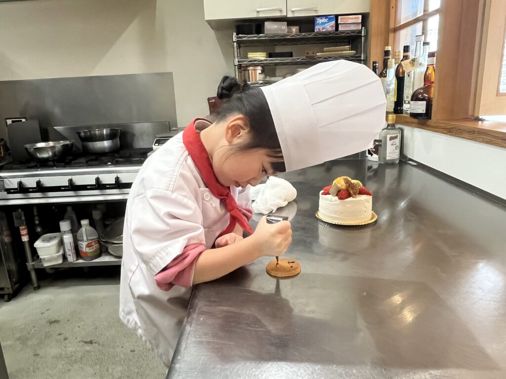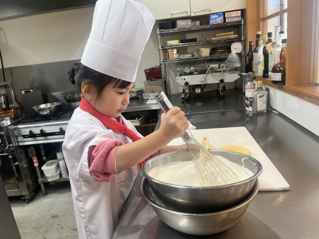 ちっびこパティシエの日記 みゆちゃん5歳 2026.02.072026.02.10 この記事は約1分で読めます。 おめめバッチリ👀❤️可愛らしい みゆちゃん5歳がケーキ作りに 来てくれました〜🎂 ドキドキ💓の様子で スタートしましたが、 ケーキが出来上がっていく様子を ワクワクして笑顔が ほぐれていくのがわかりました😉 イチゴを切る時に 切りやすいように自分で イチゴの向きを変えて切ったり🍓 クリームを絞る時も やりやすい角度にして、 自分で考えて作る姿に とっても感心しました‼️ 帰り道、ほっとした笑顔で スキップしているみゆちゃんが 店の中から見えてほっこりしました🥰