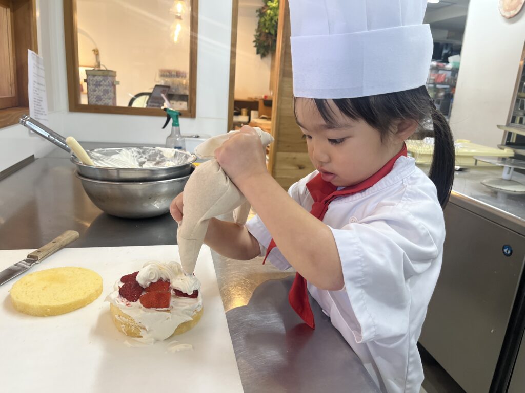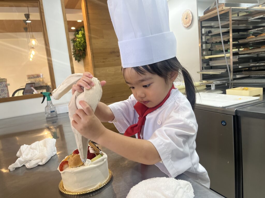 ちっびこパティシエの日記 ひまりちゃん4歳 2026.02.212026.02.24 この記事は約1分で読めます。 パパと2人で仲良く来てくれたのは ひまりちゃん4歳😊 なんとママにサプライズできるように、 ひまりちゃんにも秘密で パパが計画してくれてました✨ ひまりちゃんも今朝聞いたらしく、 ひまりちゃんにとっても サプライズですね❣️ はじめての場所で最初は 緊張気味でしたが、 だんだんケーキが出来上がって いくうちに笑顔が こぼれてきました😊 難しいチョコペンでしたが、 頑張ってママのお顔を描いてくれましたよ