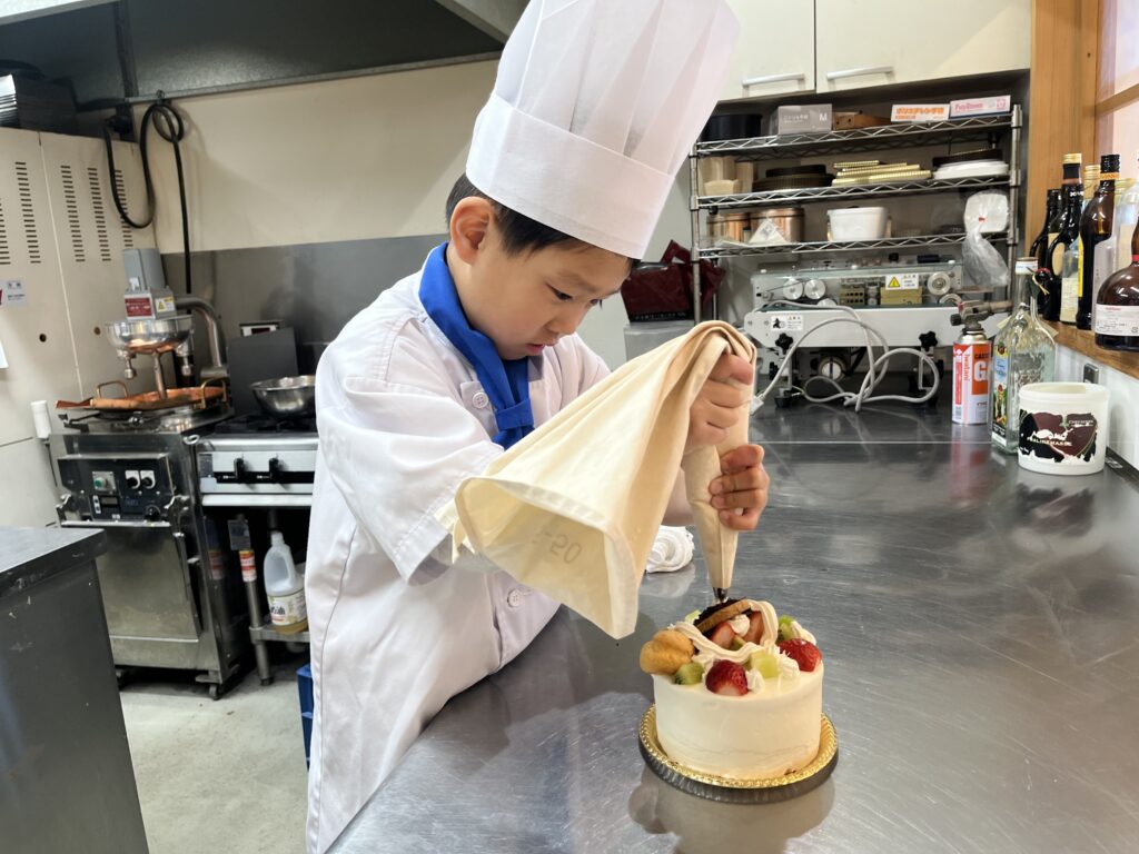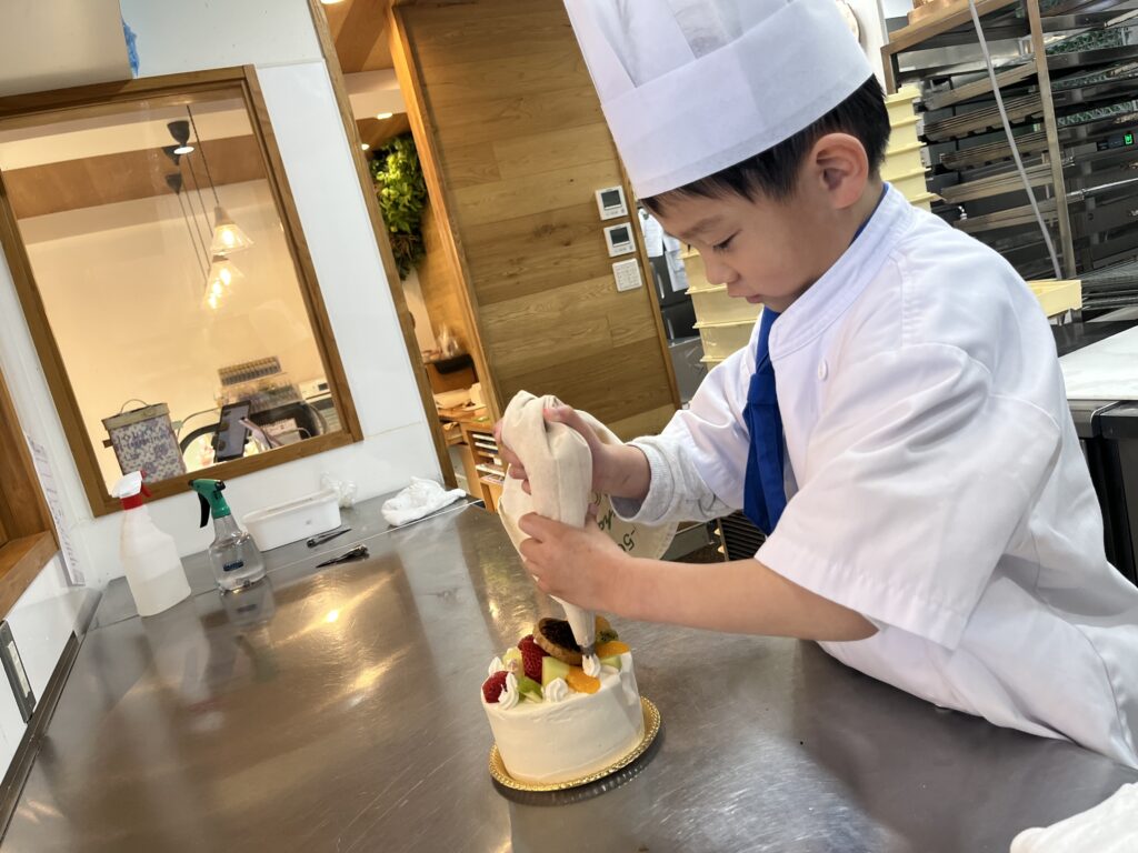 ちっびこパティシエの日記 はやと君6歳 2026.03.042026.03.05 この記事は約1分で読めます。 はやと君が6歳のお誕生日に ケーキ作りに来てくれました🎂 近頃お菓子作りに ハマっているというはやと君😊 なんと今日も来る前に クッキーを作ってきたそうで、 完成したケーキに のせたいんですって‼️ ケーキ屋さんのキッチンでの ケーキ作りにとってもうれしそうで 「次は何するー?」と、 どんどん作業を進めてくれました😄 将来はパティシエになりたい! という夢が今日少し 叶った気分になれたかな?