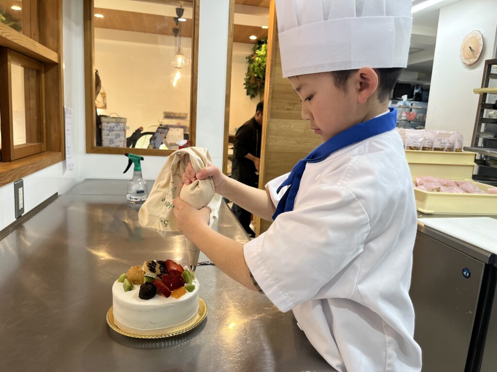 ちっびこパティシエの日記 はると君9歳 2026.03.252026.03.26 この記事は約1分で読めます。 おばあちゃんのお誕生日に ケーキ作りに来てくれたのは はると君9歳😊 おうちでもたまにお菓子作りを 楽しんでいるらしく フルーツをペタペタと普通に 貼り付けていくのではなく、 大きさのあるフルーツに 薄く切ったイチゴを立てかけたりと プロが使うような手法で クオリティーの高いデコレーションで びっくりしました🎂✨ 完成したときの 「よし!!」が力強く、 満足のいく出来栄えになって よかったです😊❣️