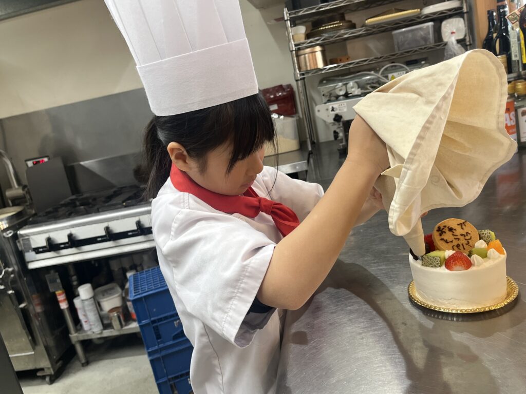 ちっびこパティシエの日記 かえでちゃん8歳 2026.03.272026.03.28 この記事は約1分で読めます。 今日のちびっこパティシエさんは、 かえでちゃん8歳😊 パパがお誕生日❗️ということで、 サプライズでバースデーケーキ作りに 挑戦しに来てくれました😆 春で3年生のかえでちゃんですが、 もっとお姉さんに見える位 とってもしっかりして見えました❣️ 生クリームを絞るのも🍦 パティシエレベルでしたし、 プレートにも上手に 「おめでとう(^^)パパ」と 書くこともできて 8歳が作ったと思えない 仕上がりになりましたよ‼️ かえでちゃんが作ったケーキで パパのお祝い❤️ とってもうれしいですね🥰