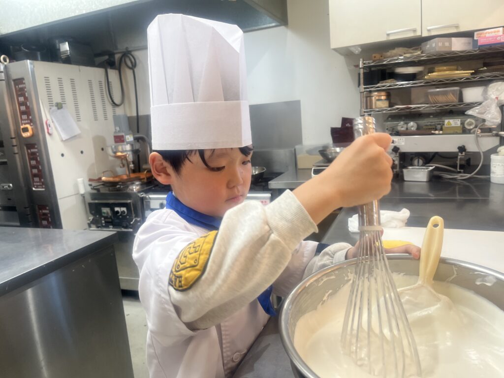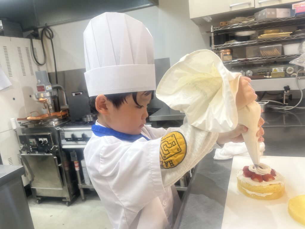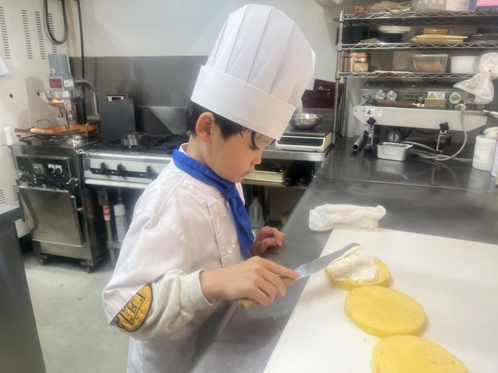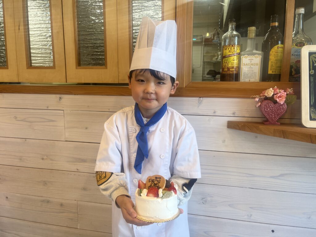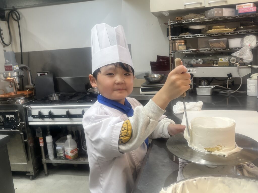 ちっびこパティシエの日記 りく君7歳 2026.04.112026.04.14 この記事は約1分で読めます。 2月に弟のゆうせい君が 来てくれましたが、今日はお兄ちゃんの りく君が、妹さんのバースデーケーキを 作りに来てくれました🎂❣️ いつもはサッカーを頑張っている りく君が、今日はケーキ屋さんになって 腕をふるってくれます‼️💪 大好きなマイクラの絵を描いて 「線が曲がってまもた〜💦」と 言いながらも ケーキの完成に満足そう😊 また来たーい❣️と 喜んで家路についてくれました♪